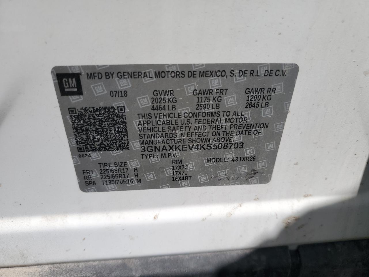 VIN: 3GNAXKEV4KS508703