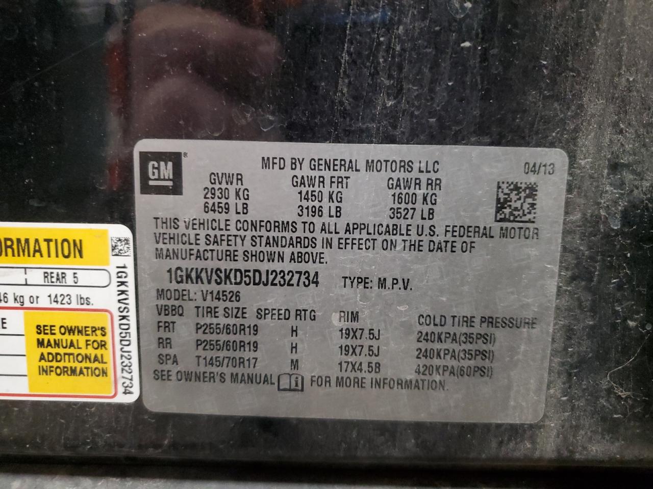 VIN: 1GKKVSKD5DJ232734