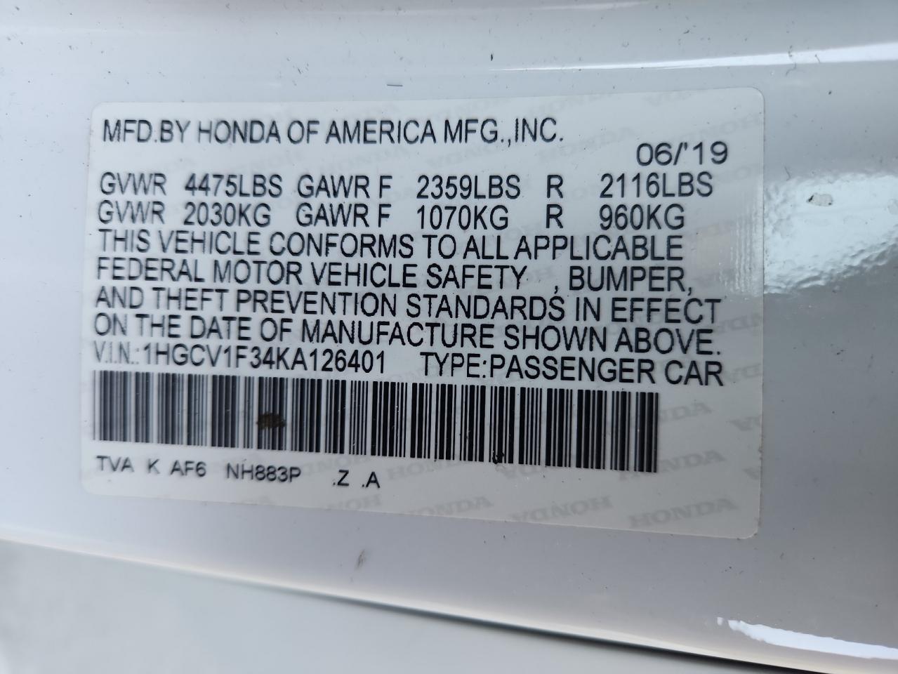 VIN: 1HGCV1F34KA126401