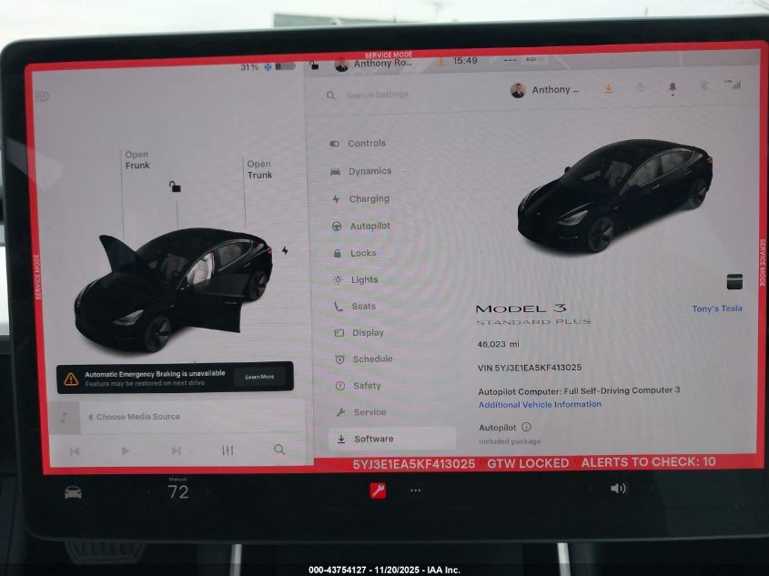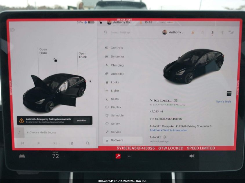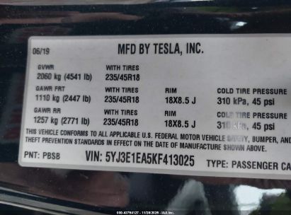 2019 TESLA MODEL 3 LONG RANGE/MID RANGE/STANDARD RANGE/STANDARD RANGE PLUS