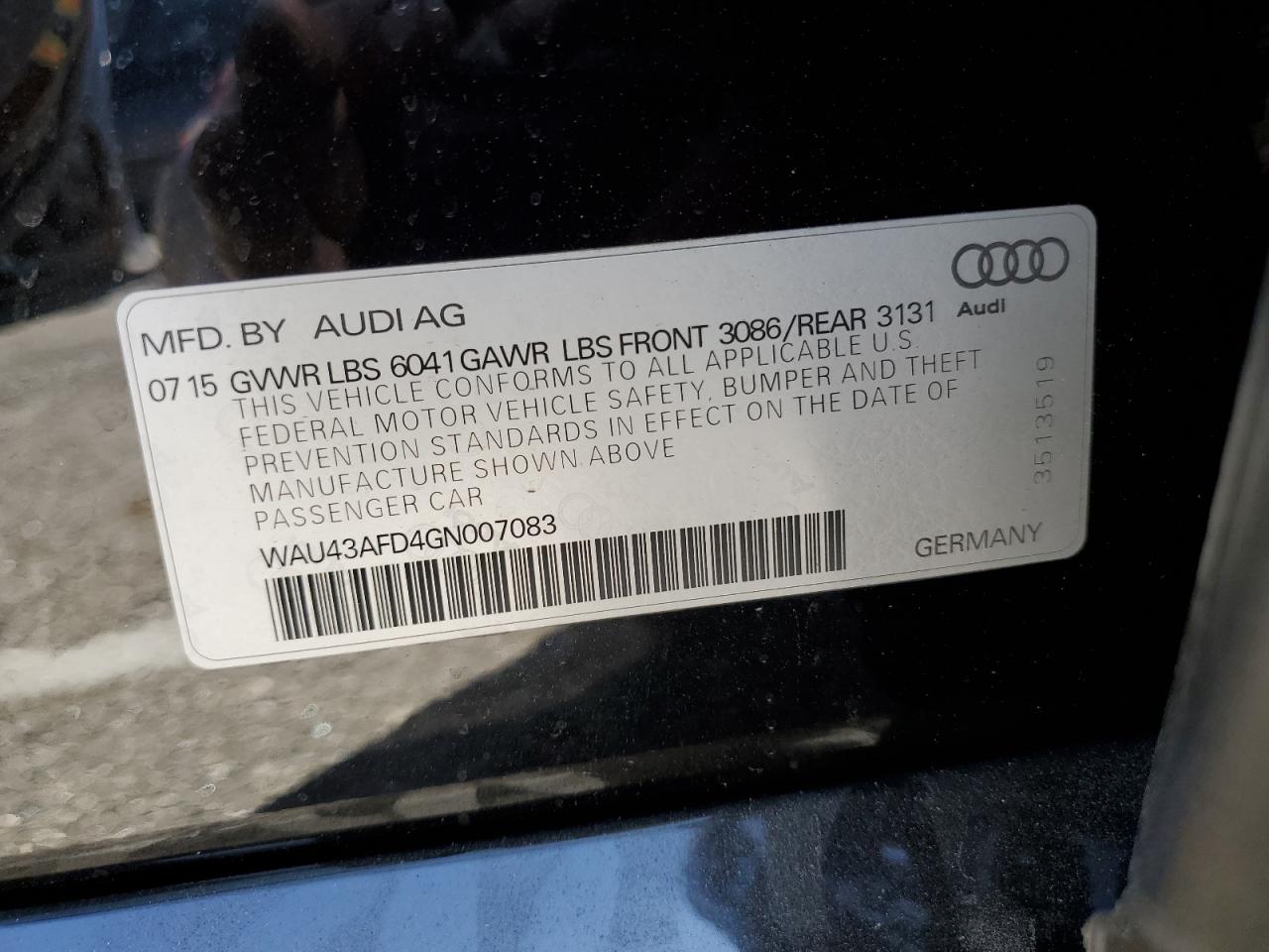 VIN: WAU43AFD4GN007083