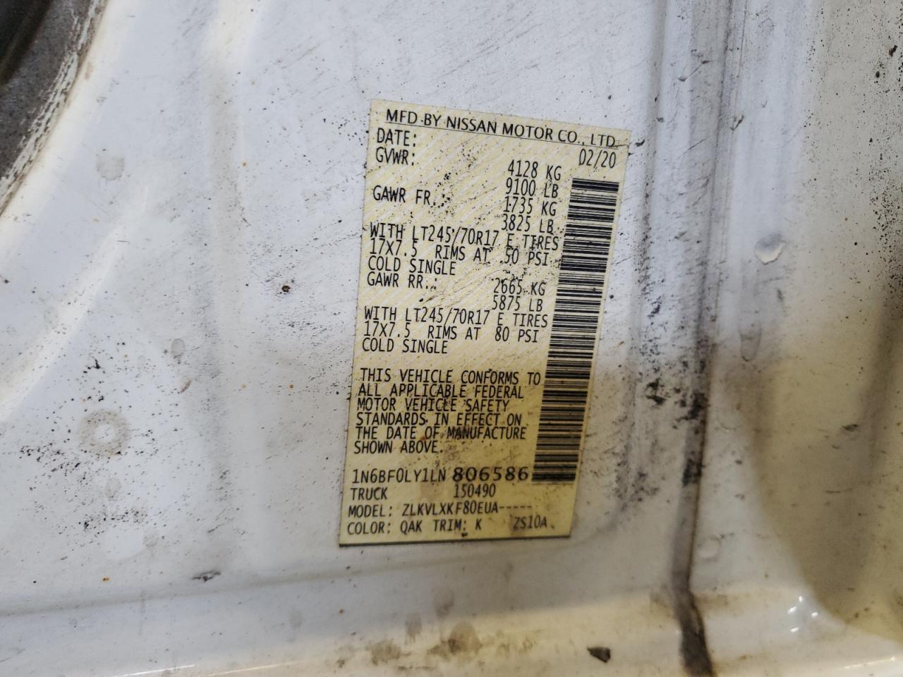 VIN: 1N6BF0LY1LN806586