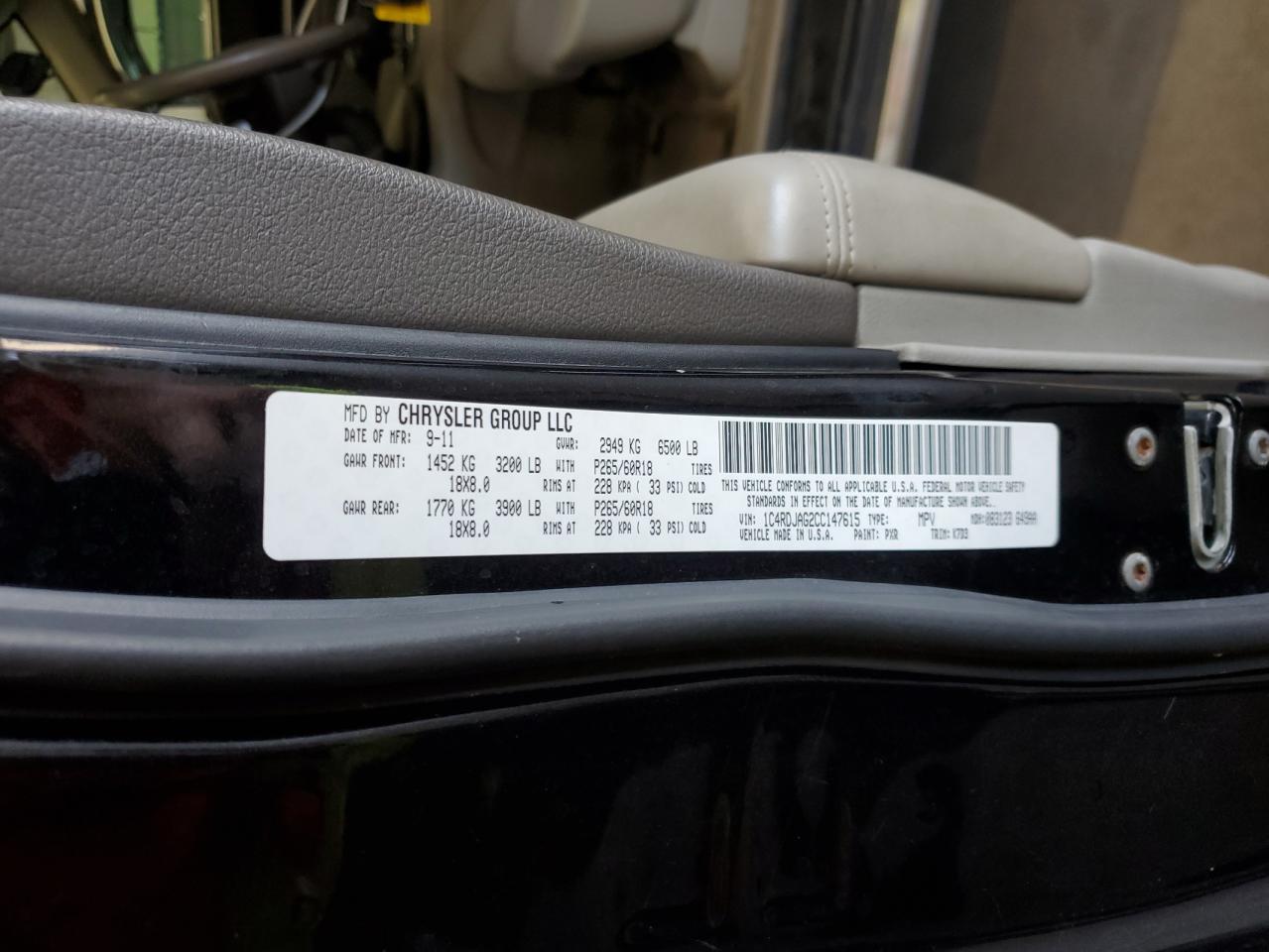 VIN: 1C4RDJAG2CC147615