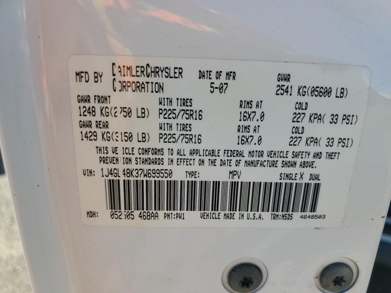 VIN: 1J4GL48K37W699550