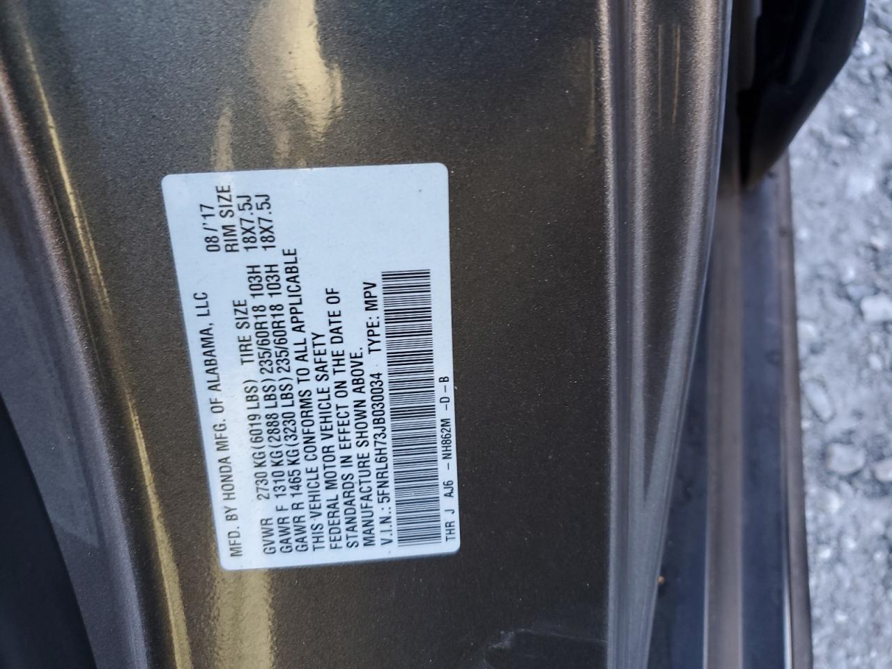 VIN: 5FNRL6H73JB030034