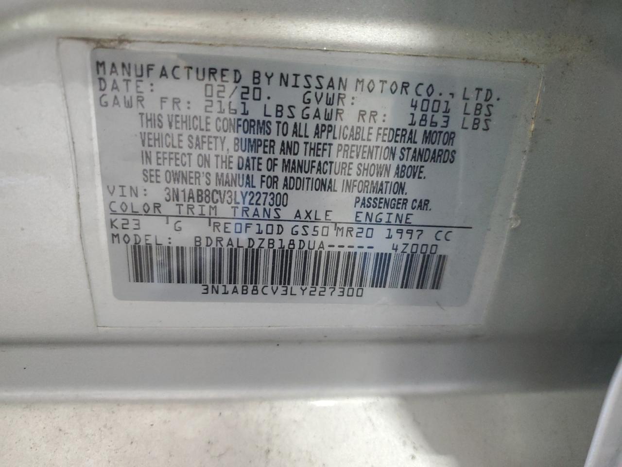 VIN: 3N1AB8CV3LY227300