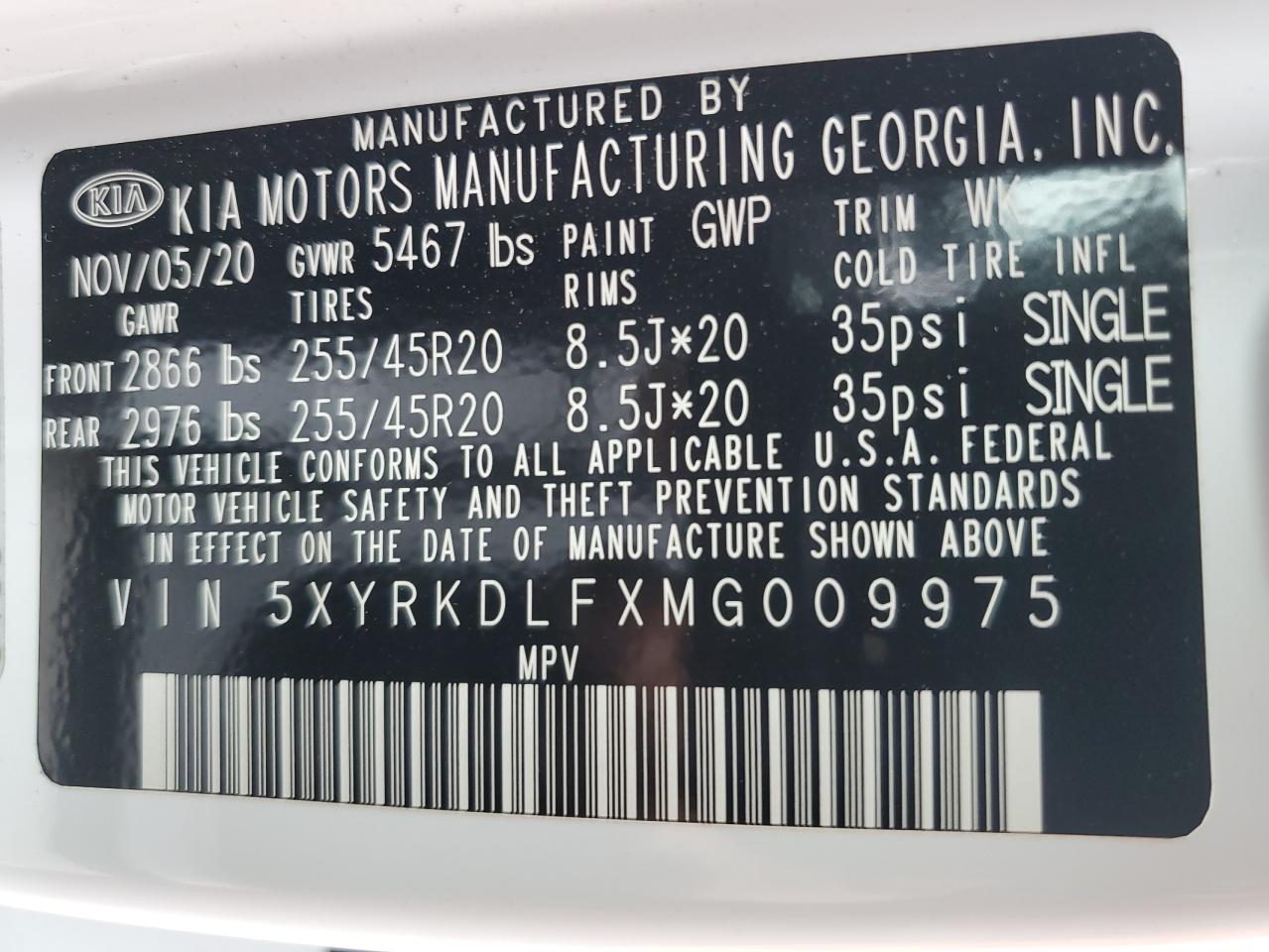 VIN: 5XYRKDLFXMG009975
