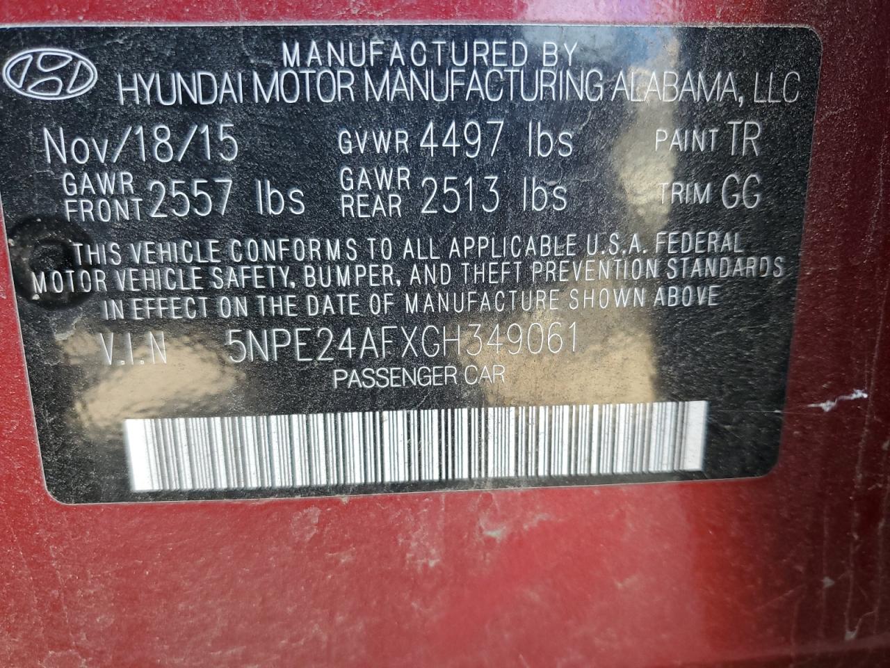 VIN: 5NPE24AFXGH349061