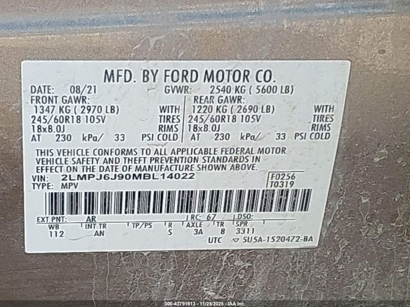 2021 LINCOLN NAUTILUS STANDARD