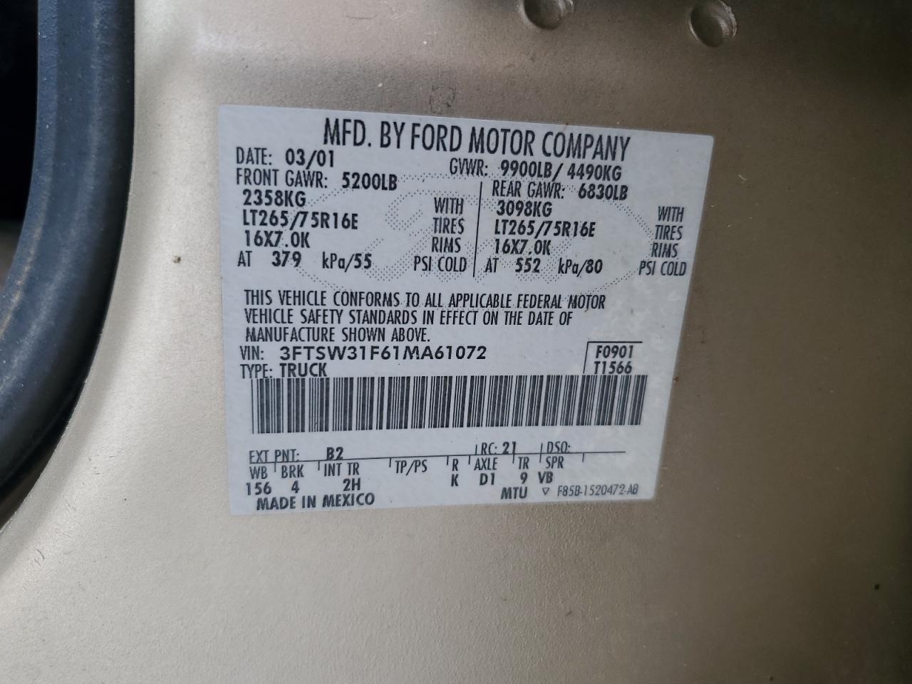 VIN: 3FTSW31F61MA61072
