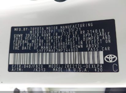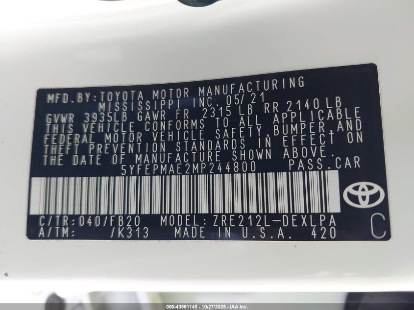 2021 TOYOTA COROLLA LE