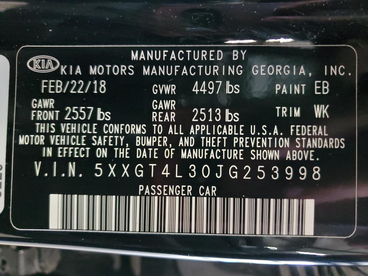 VIN: 5XXGT4L30JG253998