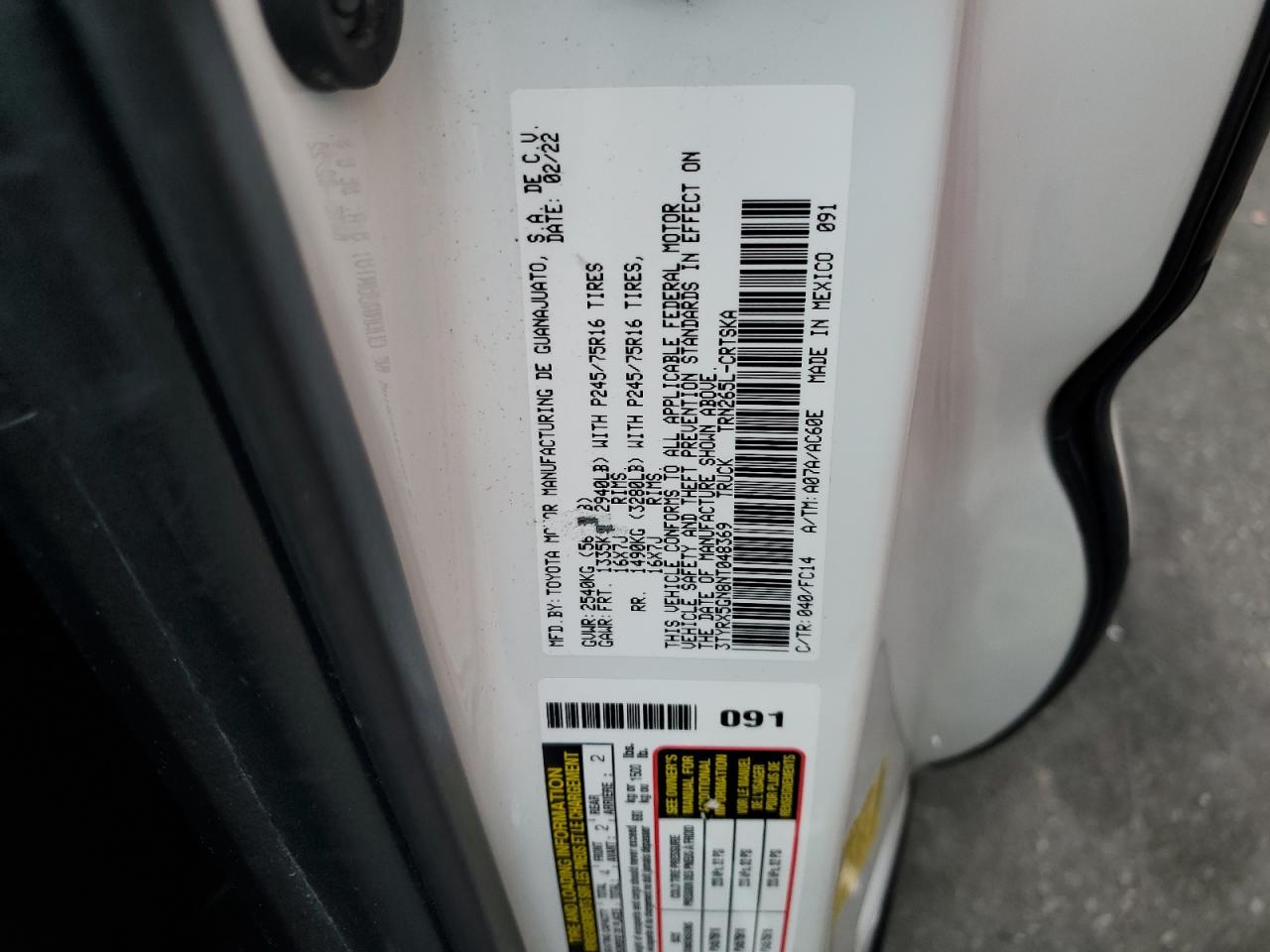 VIN: 3TYRX5GN8NT048369