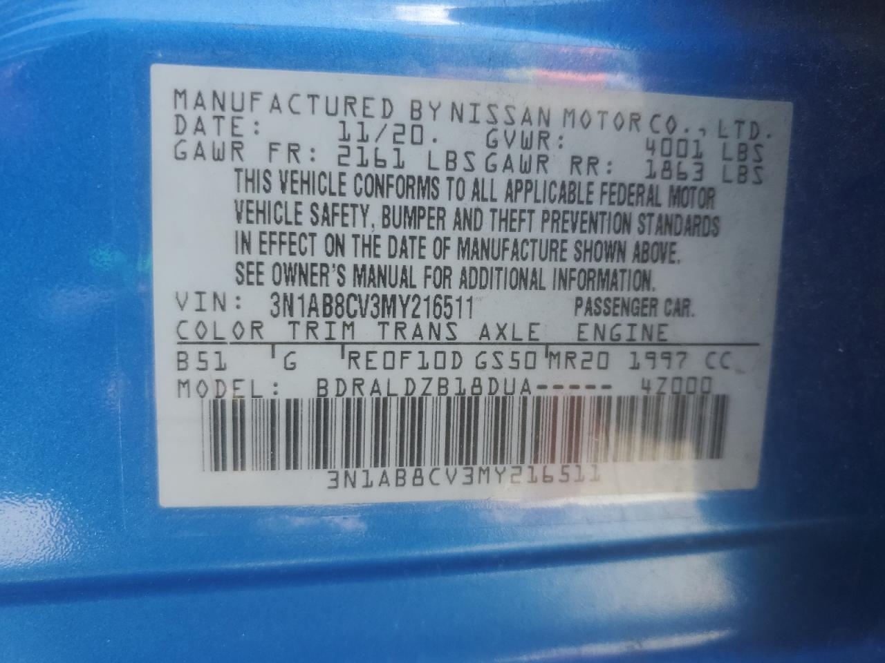 VIN: 3N1AB8CV3MY216511