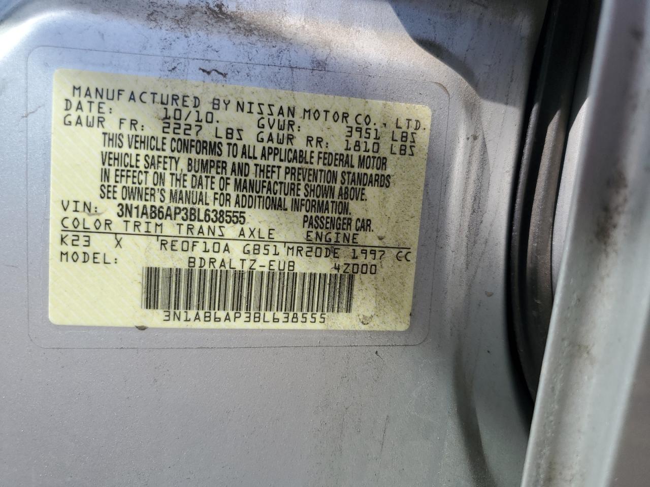 VIN: 3N1AB6AP3BL638555