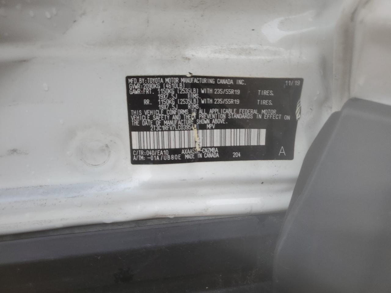 VIN: 2T3C1RFV7LC039543