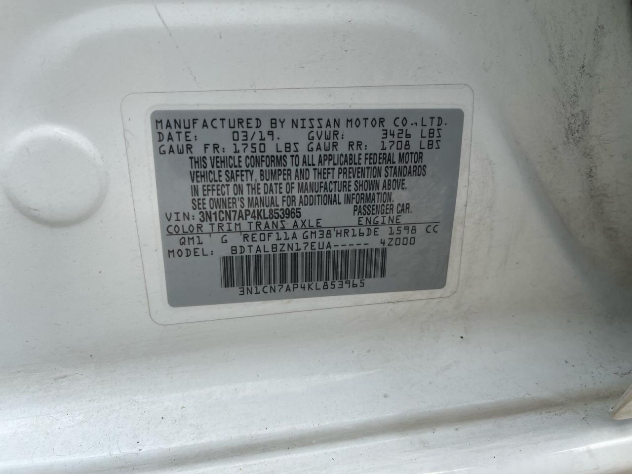 VIN: 3N1CN7AP4KL853965