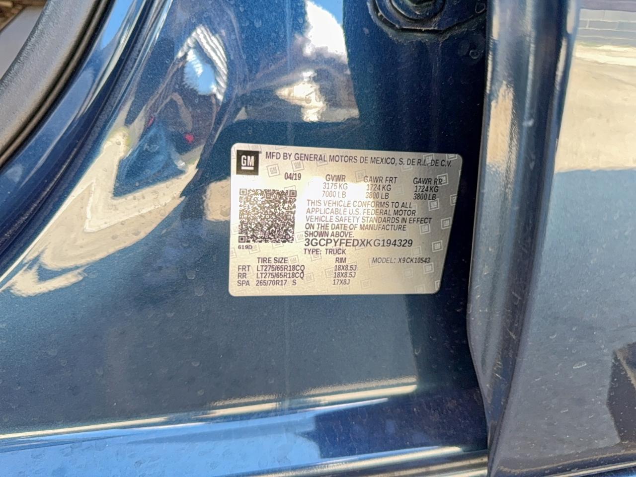 VIN: 3GCPYFEDXKG194329