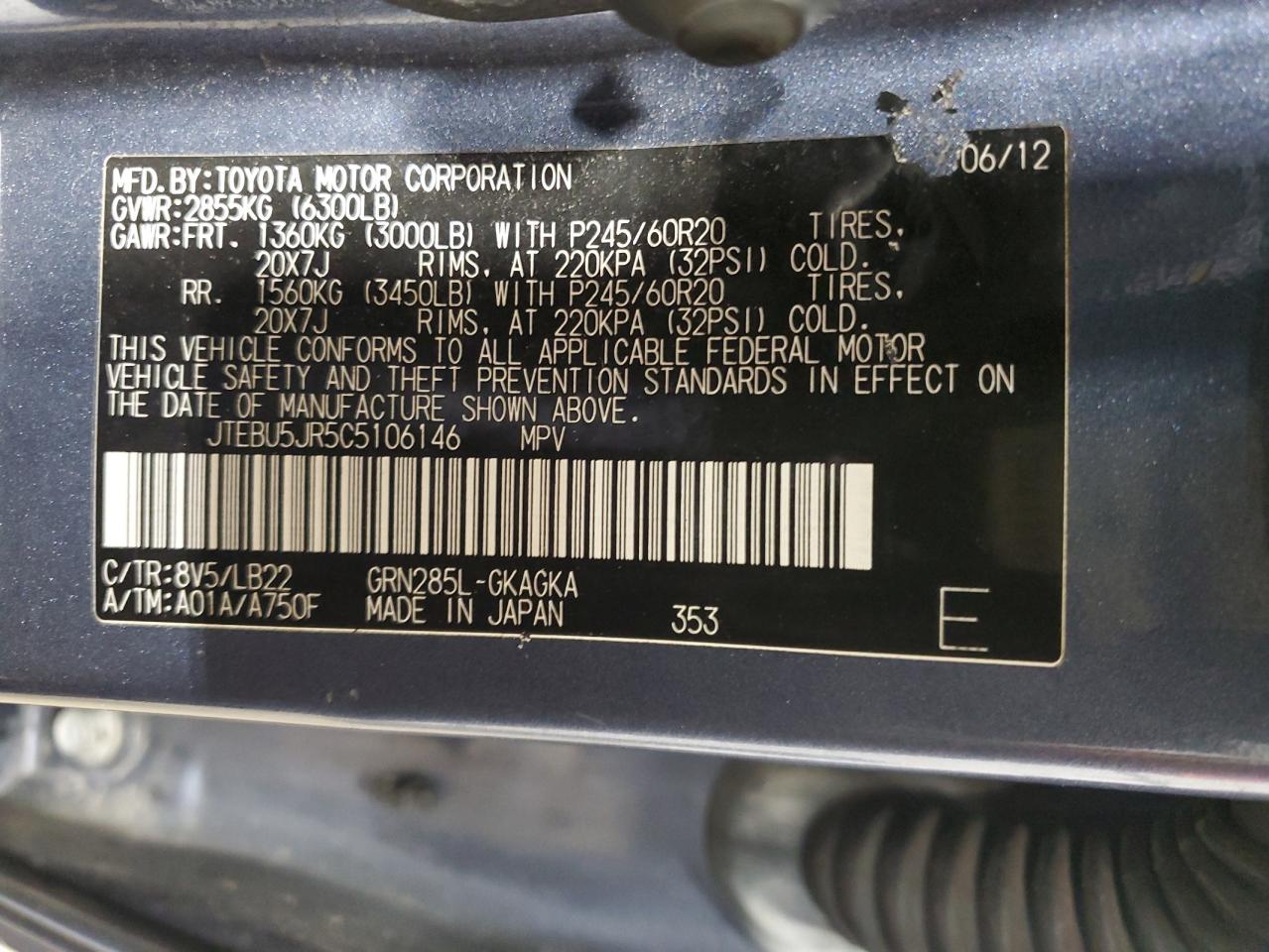 VIN: JTEBU5JR5C5106146