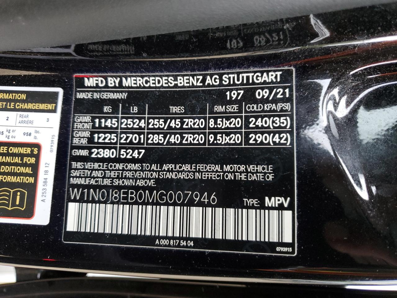 VIN: W1N0J8EB0MG007946