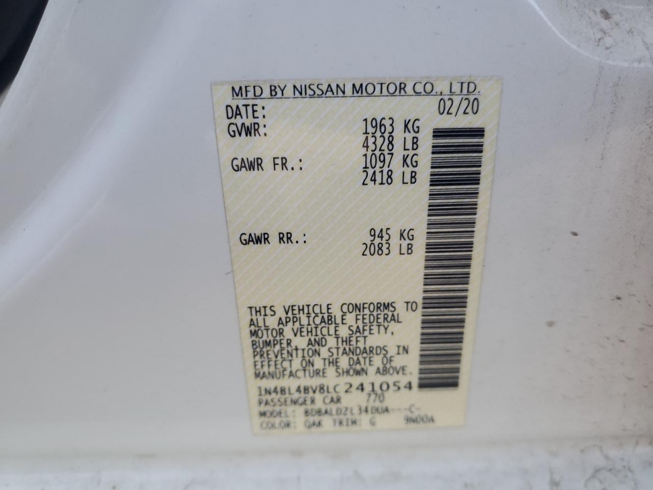 VIN: 1N4BL4BV8LC241054