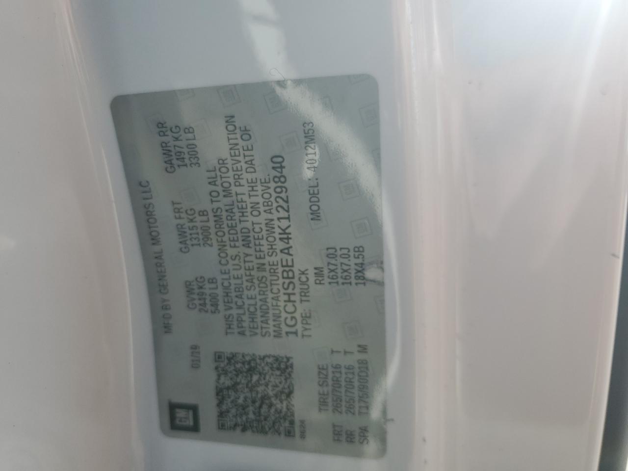 VIN: 1GCHSBEA4K1229840