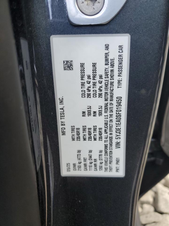 VIN: 5YJ3E1EA0SF019450