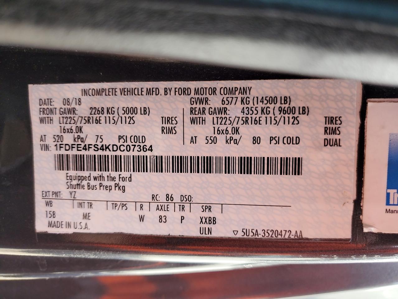 VIN: 1FDFE4FS4KDC07364