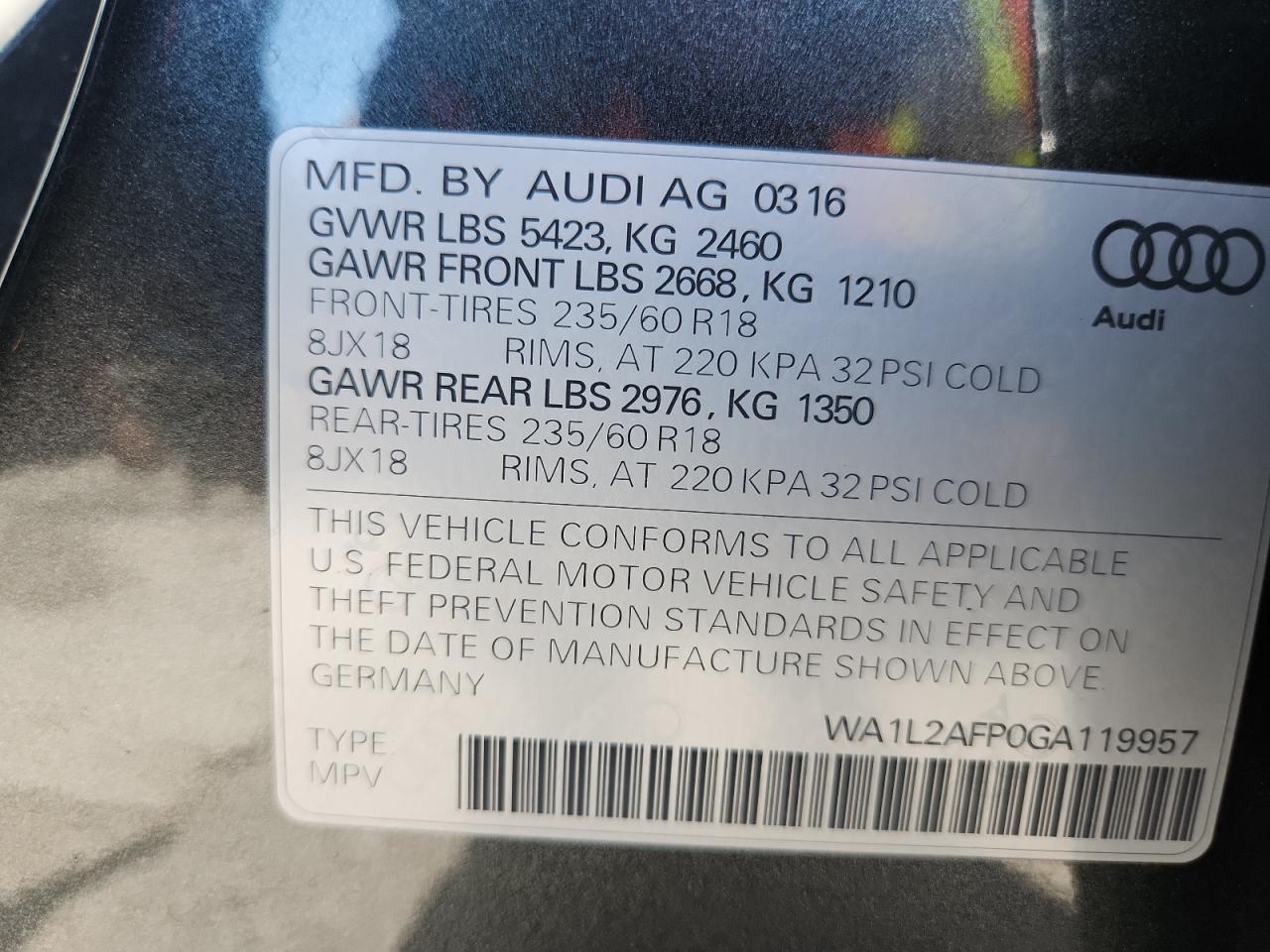 VIN: WA1L2AFP0GA119957