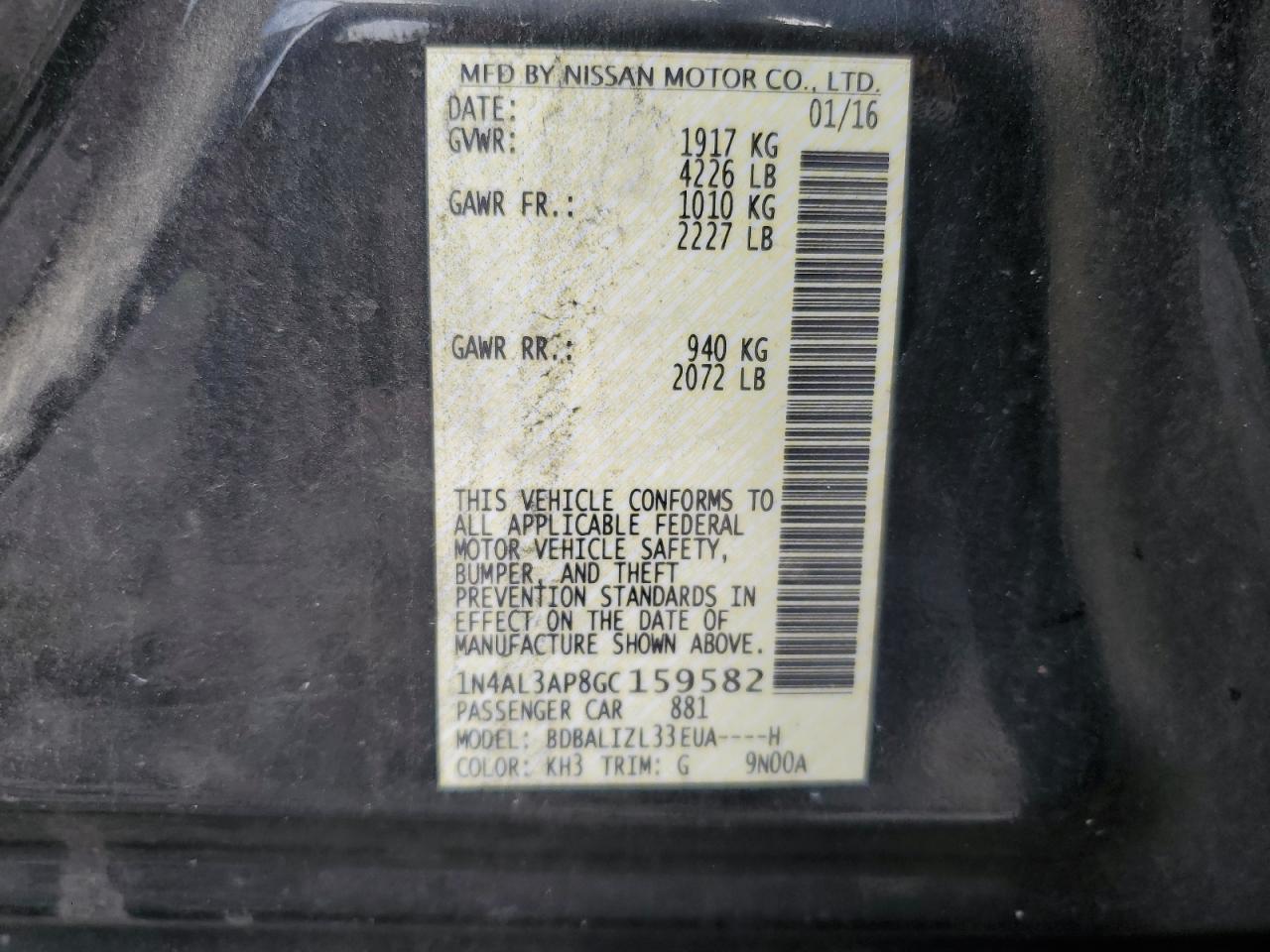 VIN: 1N4AL3AP8GC159582