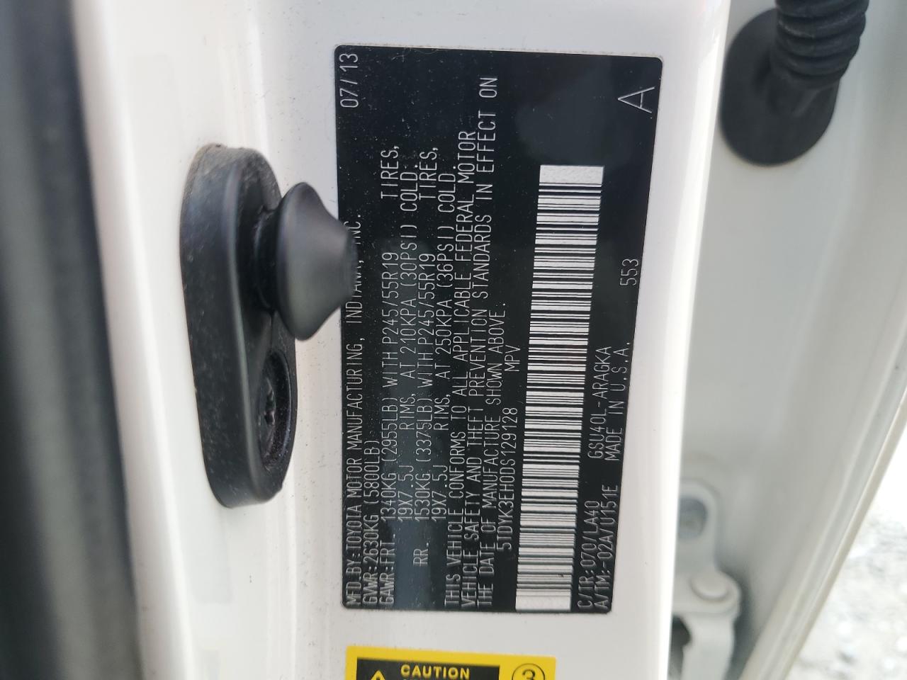 VIN: 5TDYK3EH0DS129128