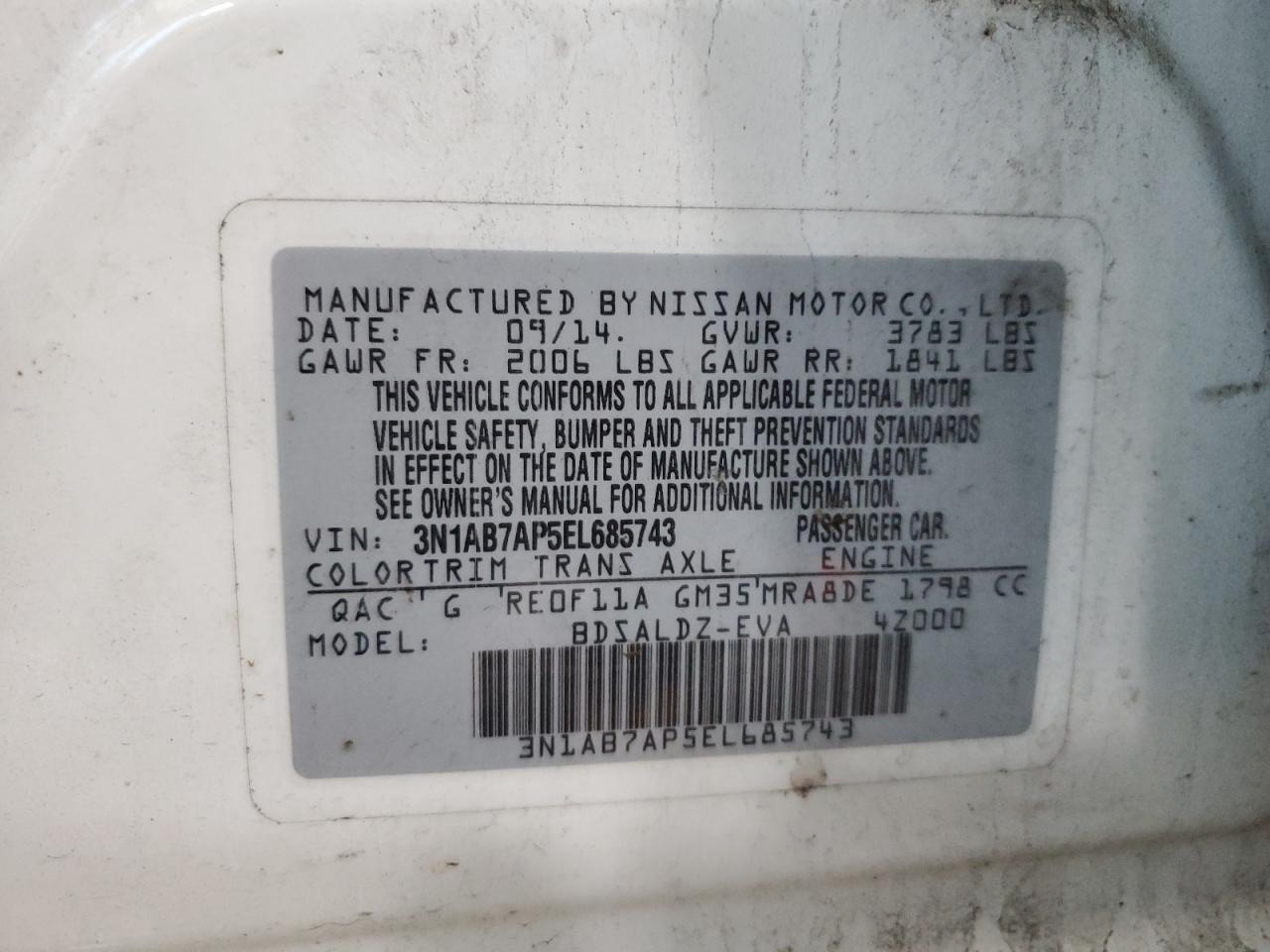 VIN: 3N1AB7AP5EL685743