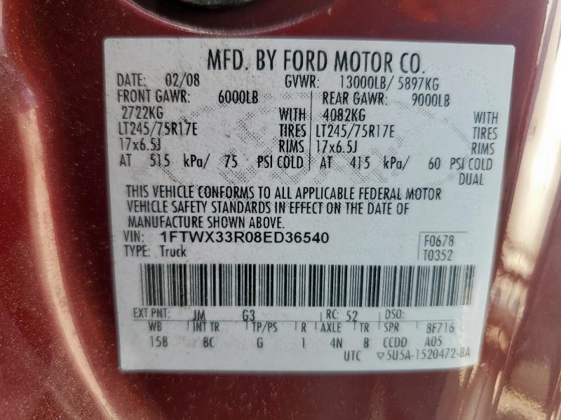 VIN: 1FTWX33R08ED36540