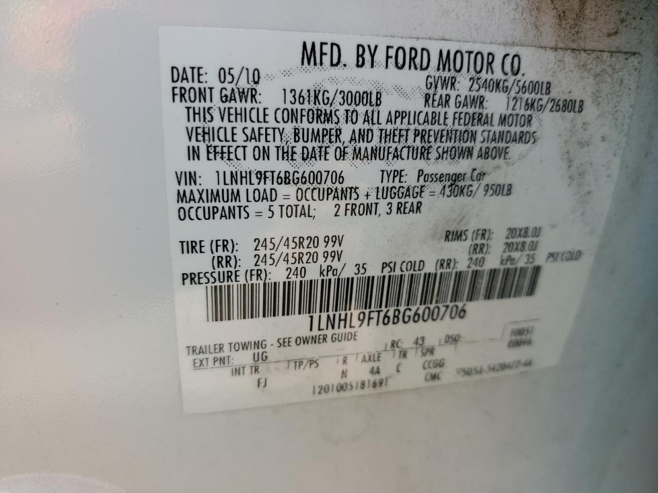 VIN: 1LNHL9FT6BG600706