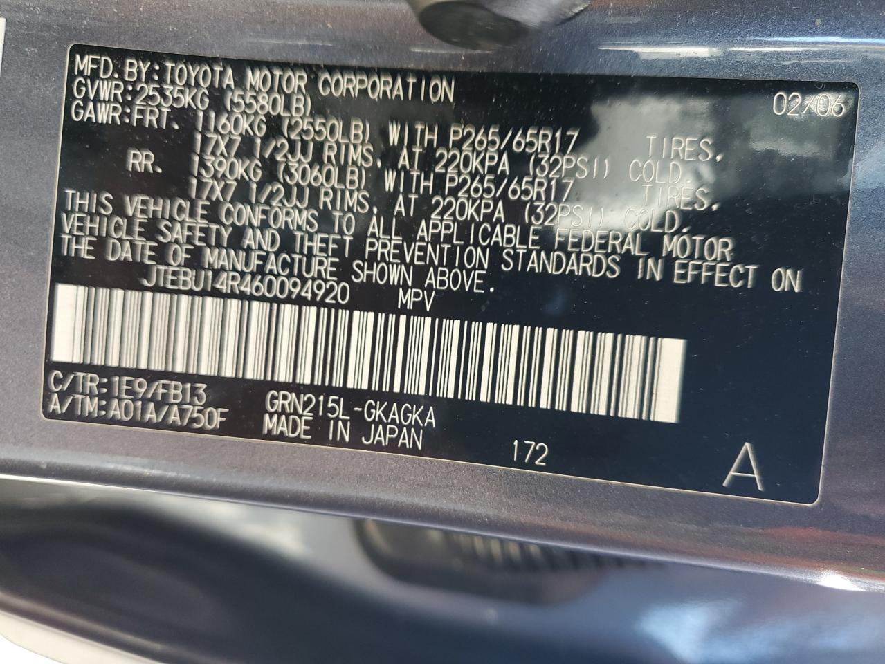 VIN: JTEBU14R460094920