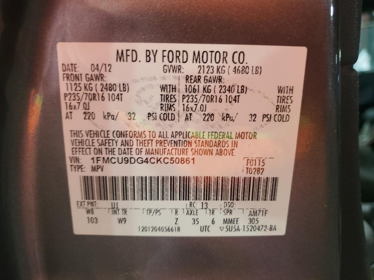 VIN: 1FMCU9DG4CKC50861