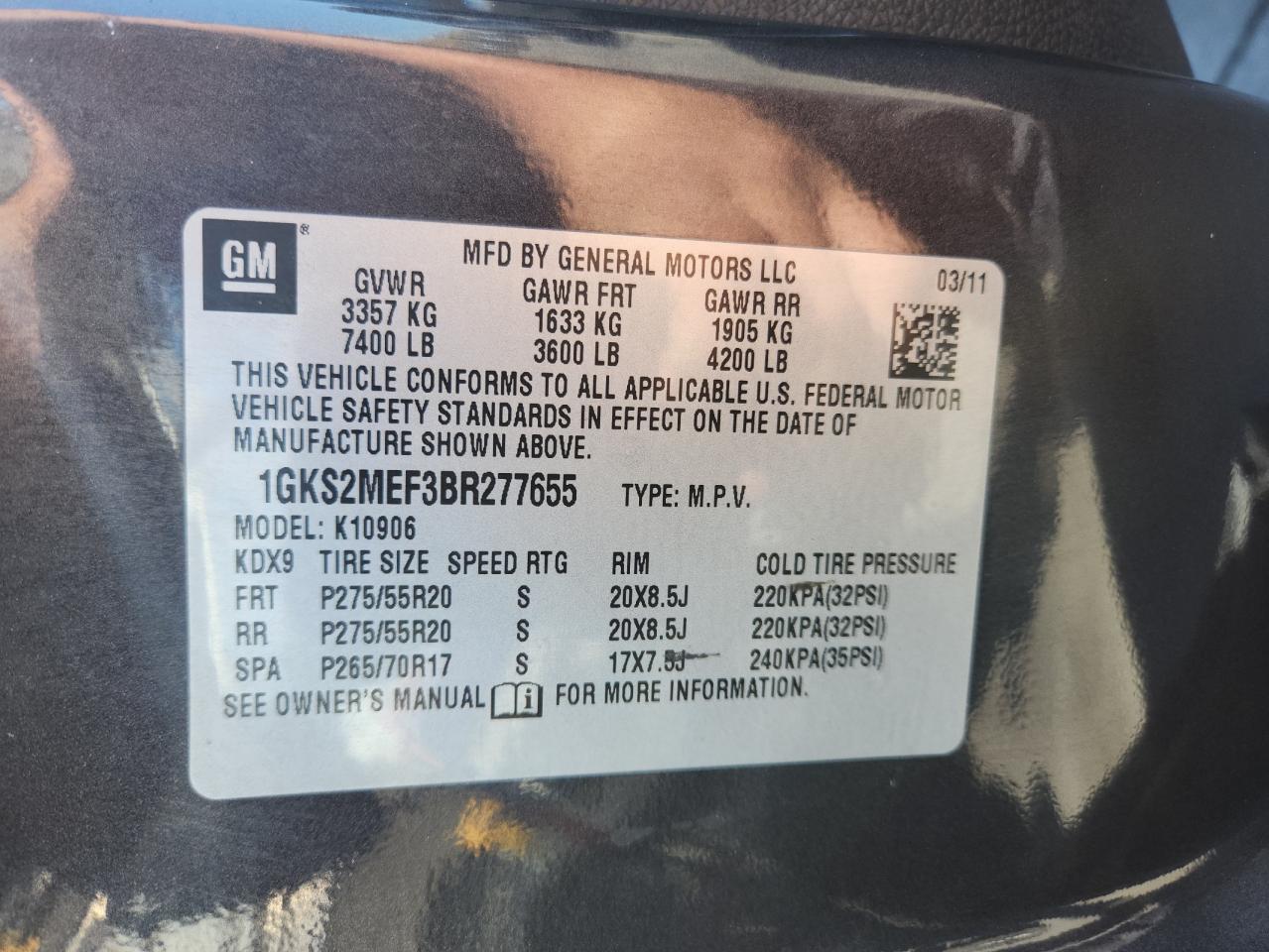 VIN: 1GKS2MEF3BR277655