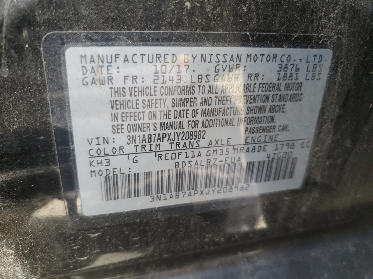 VIN: 3N1AB7APXJY208982