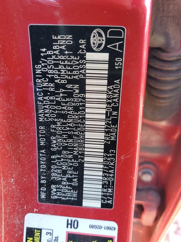 VIN: 2T1BURHE0EC101179