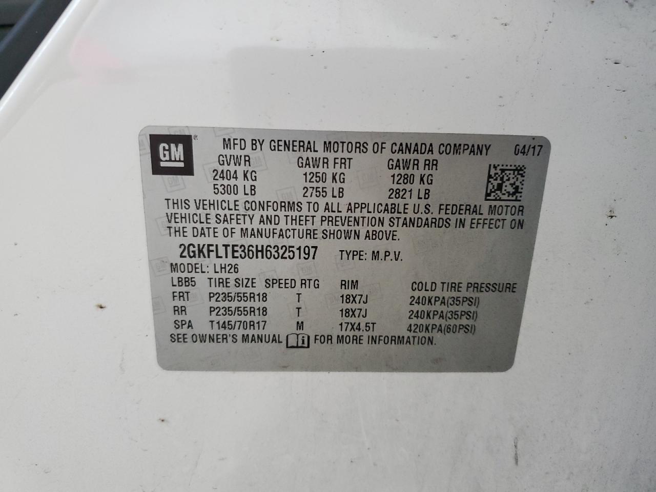 VIN: 2GKFLTE36H6325197