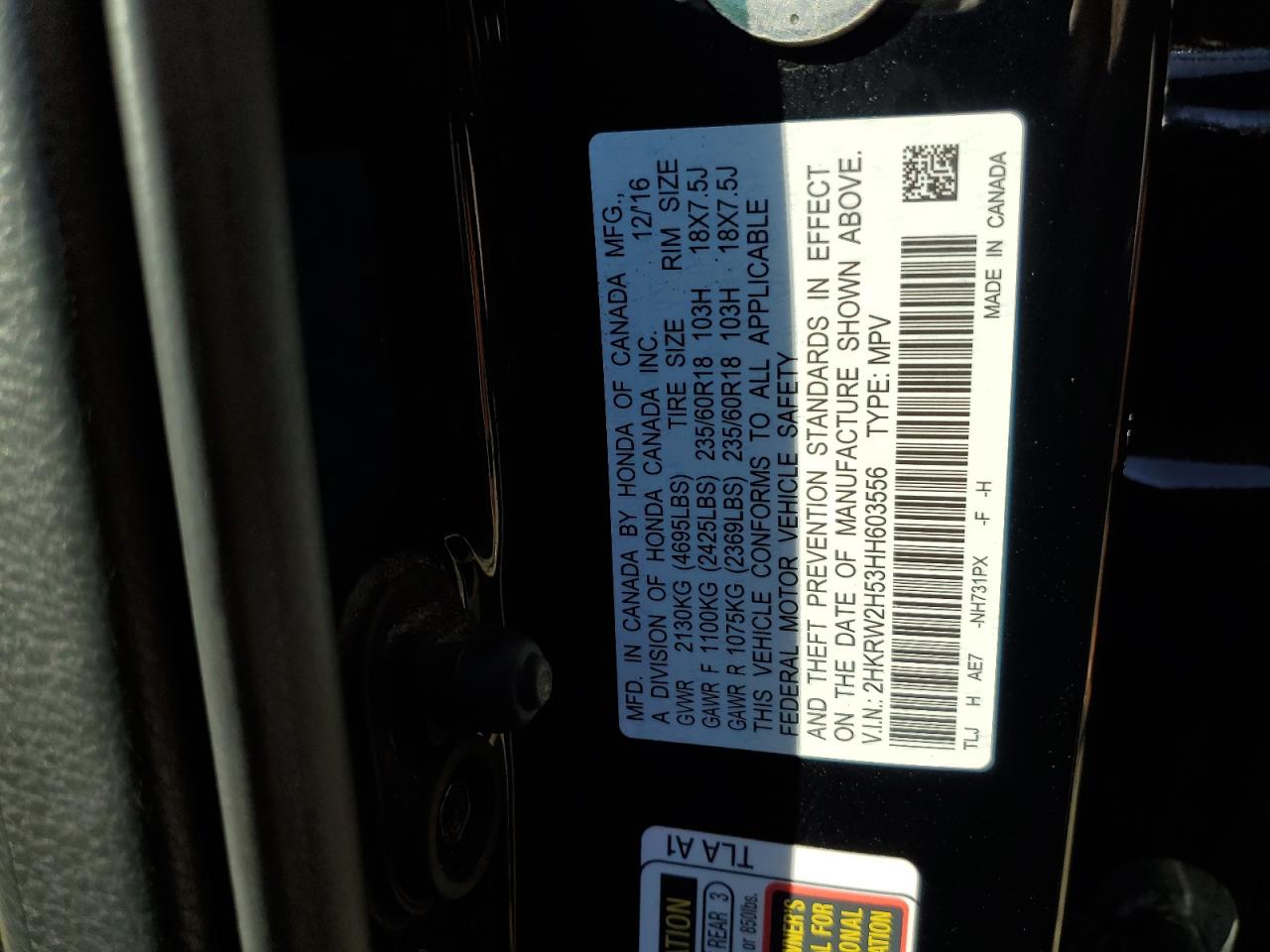 VIN: 2HKRW2H53HH603556