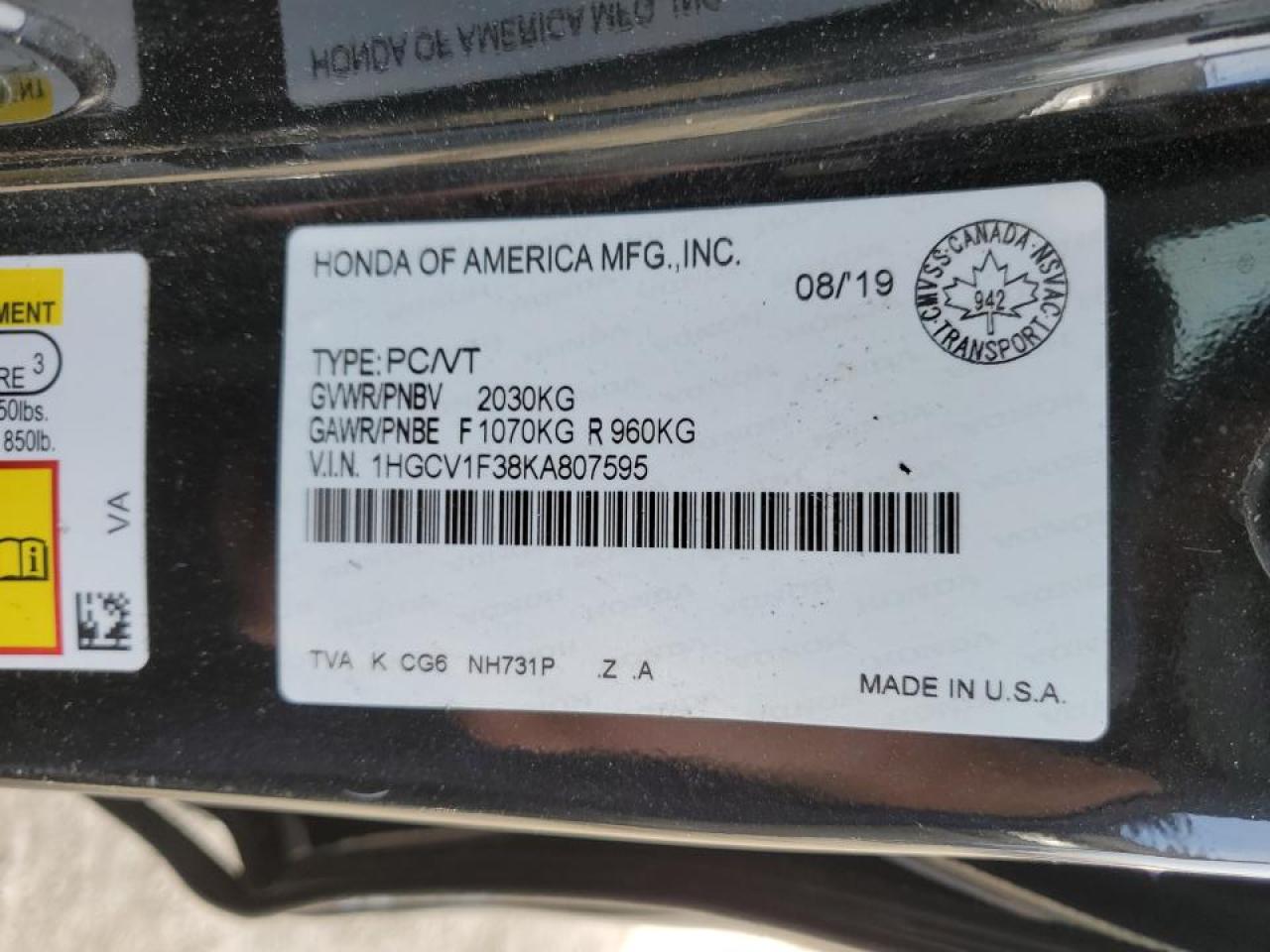VIN: 1HGCV1F38KA807595