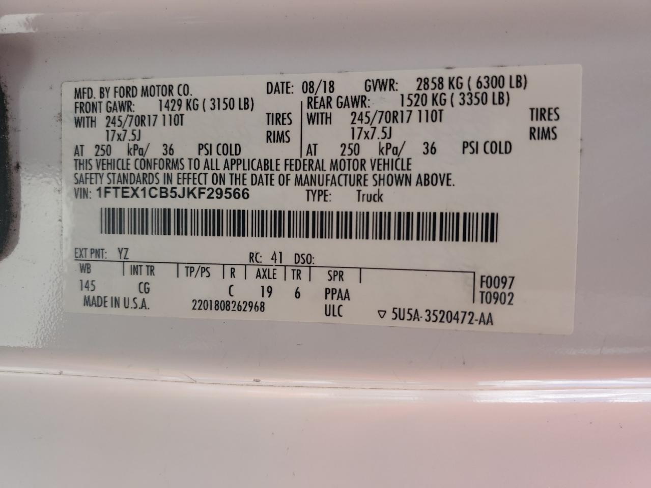 VIN: 1FTEX1CB5JKF29566