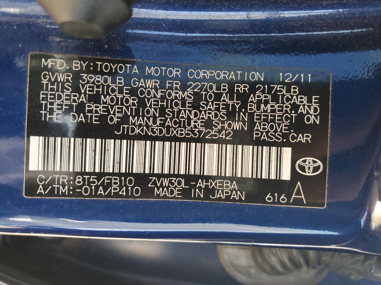 VIN: JTDKN3DUXB5372542