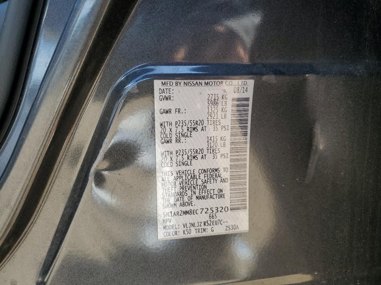 VIN: 5N1AR2MM8EC725320