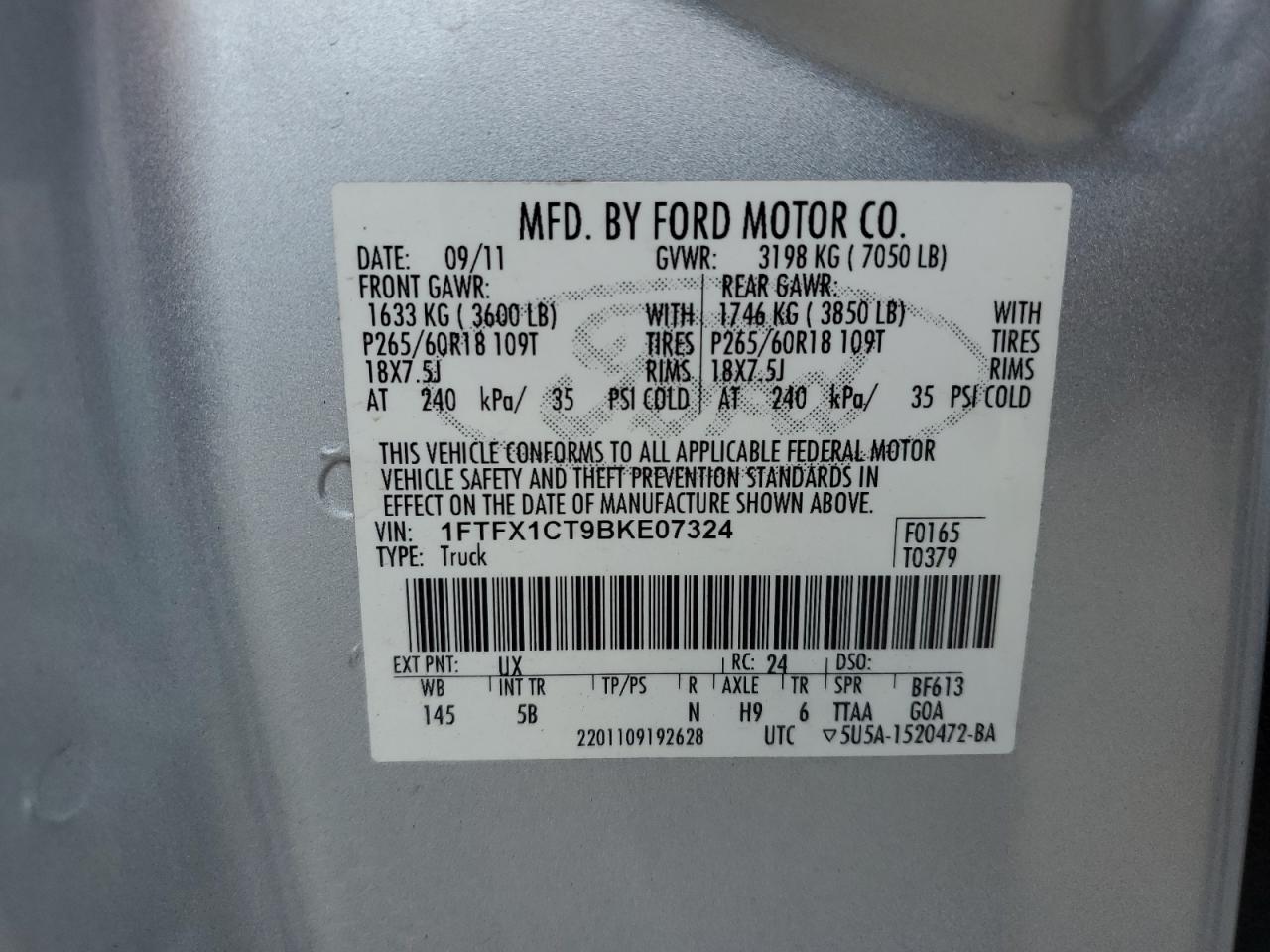 VIN: 1FTFX1CT9BKE07324