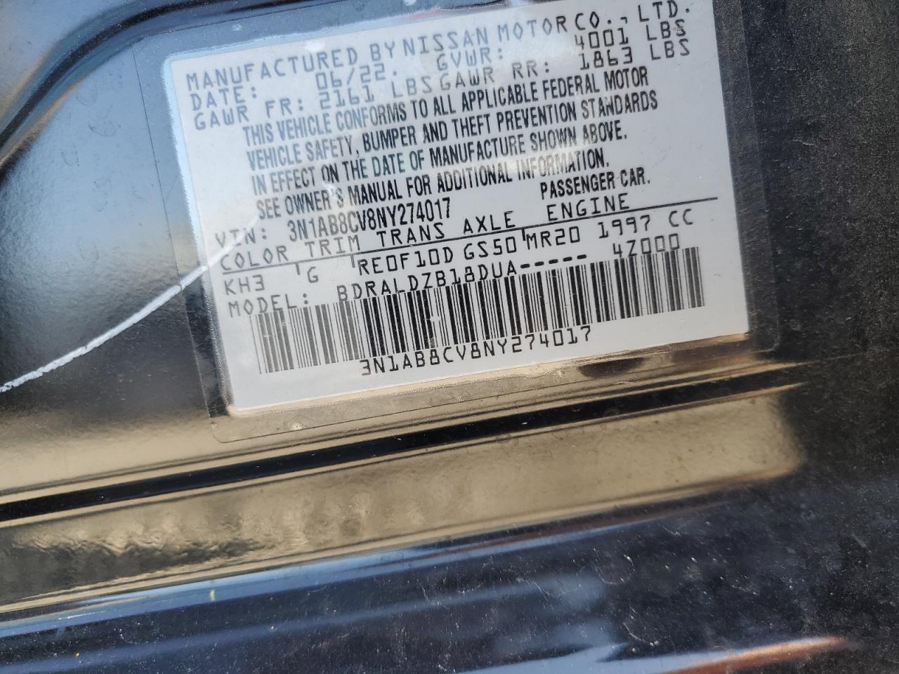 VIN: 3N1AB8CV8NY274017