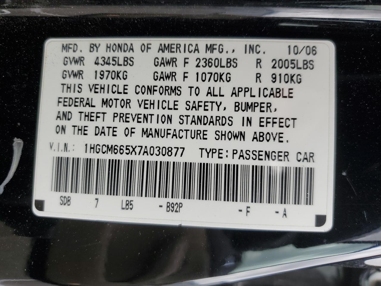 VIN: 1HGCM665X7A030877