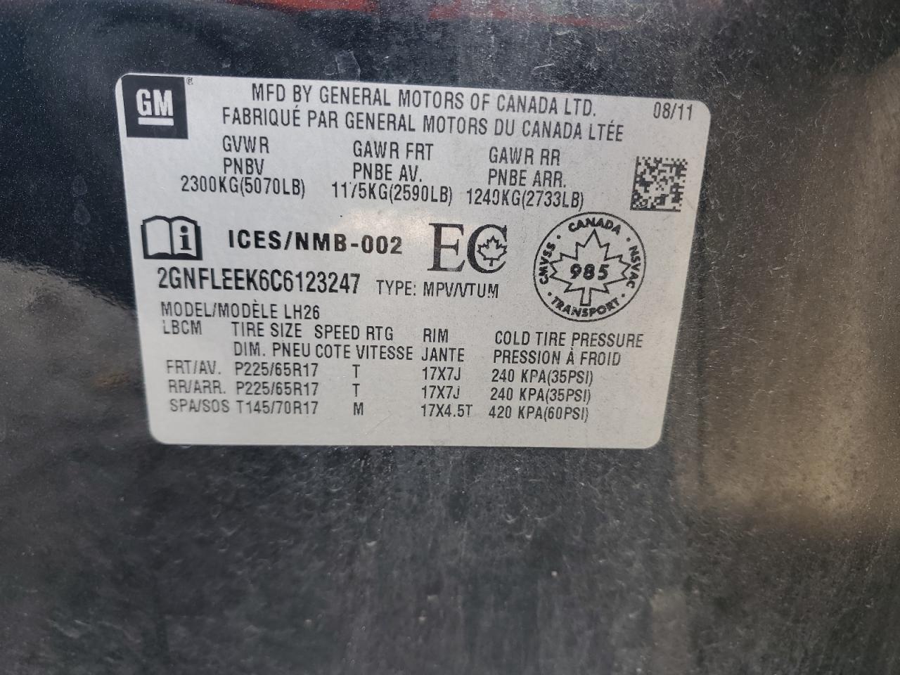 VIN: 2GNFLEEK6C6123247