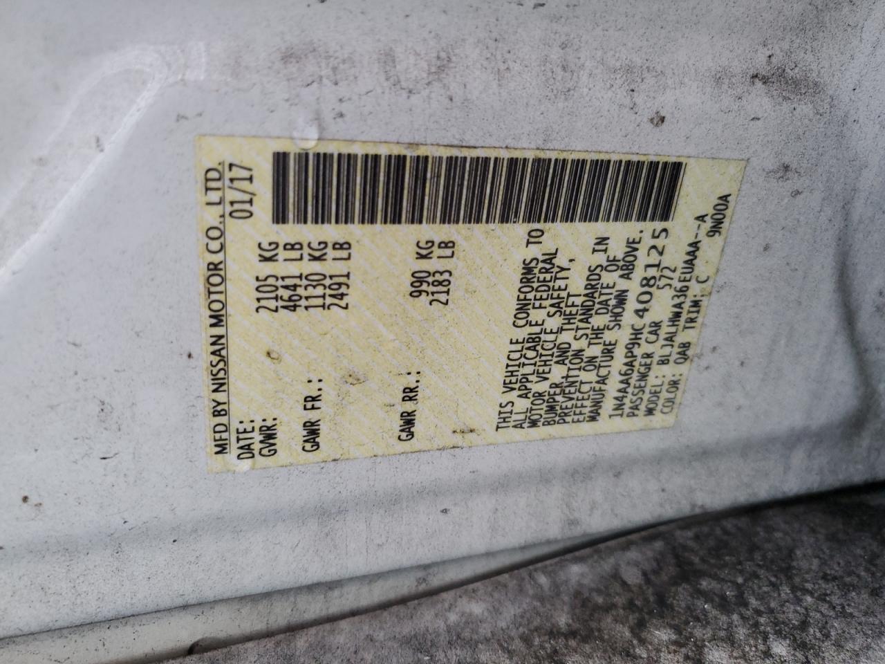VIN: 1N4AA6AP9HC408125